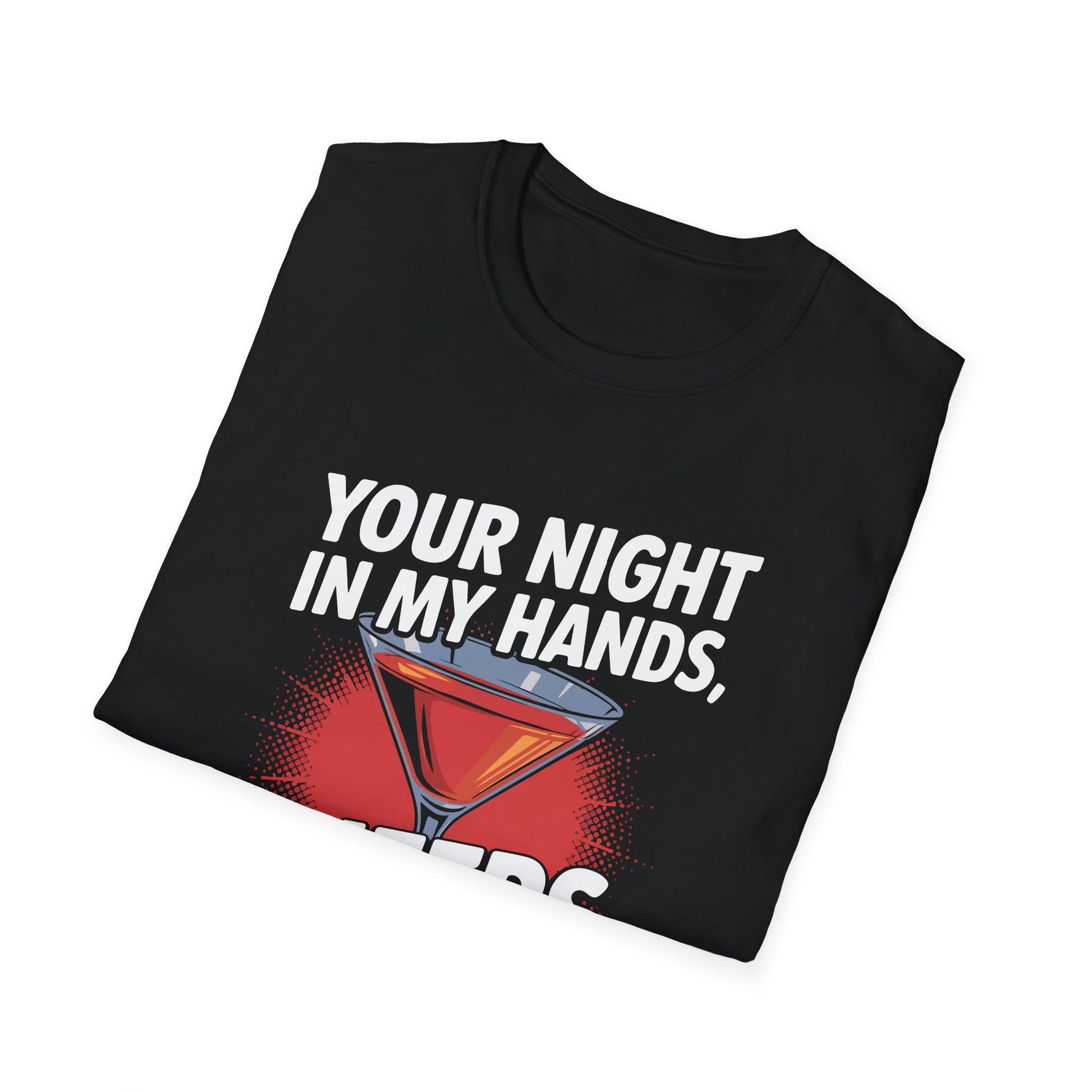 Celebrate your role in making nights unforgettable with the "Your Night in My Hands, Cheers to That" tee. Featuring a vibrant martini glass illustration and bold lettering, this shirt is perfect for bartenders who take pride in their craft. Whether you’re mixing up cocktails or pouring the perfect drink, this design adds flair to your bartending persona. Get ready to own the night—cheers to that!