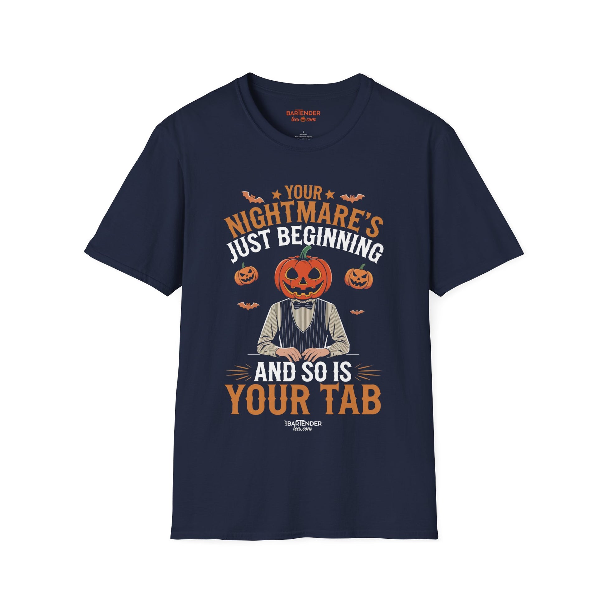 "Your Nightmares Just Beginning and so is Your Tab" Halloween Bartender Softstyle T-Shirt
