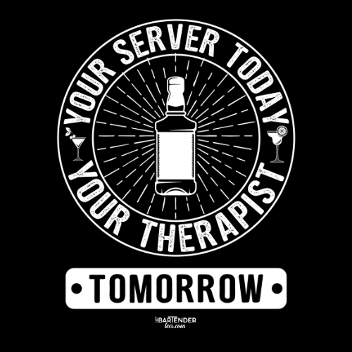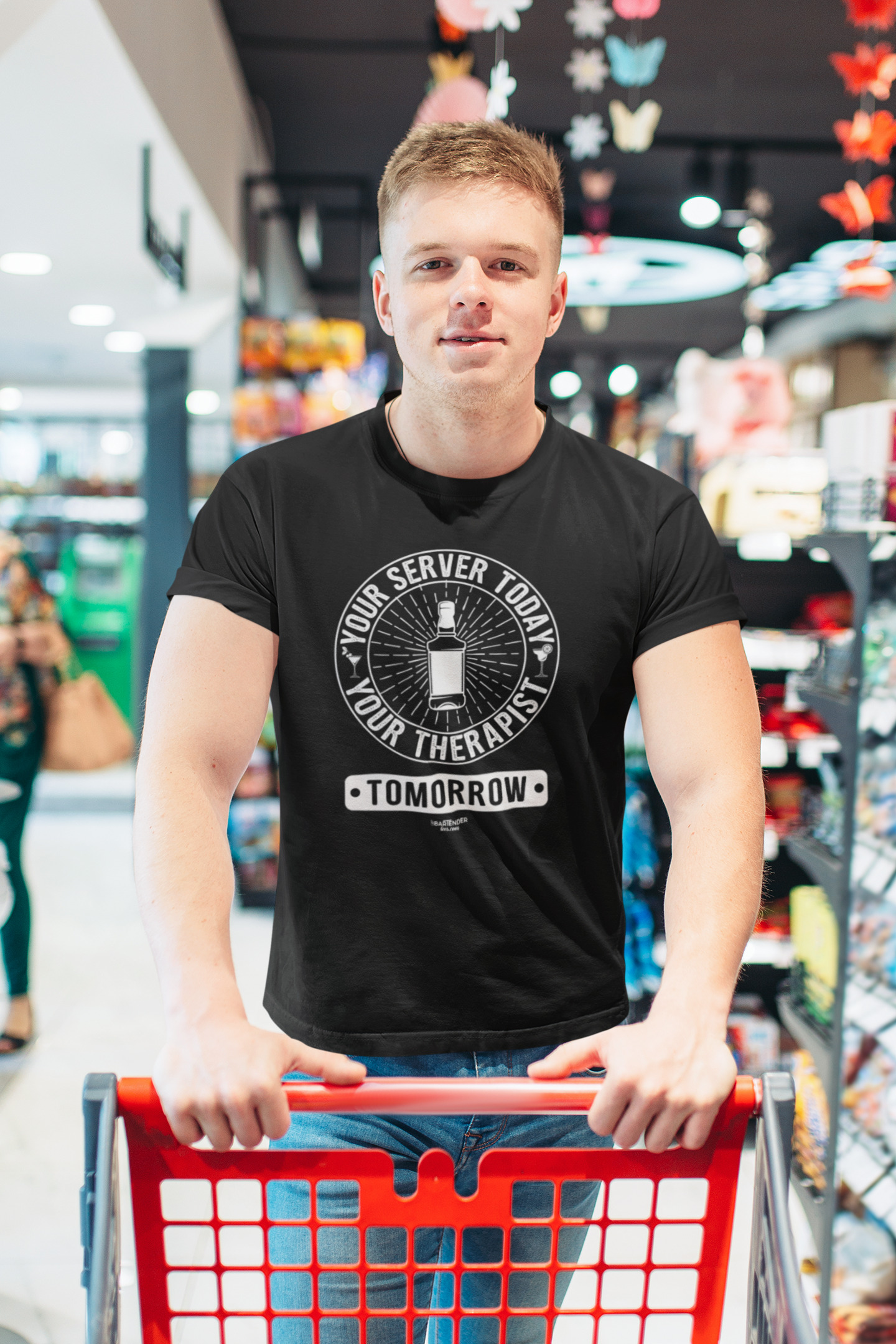 Serving more than just food and drinks, this shirt is a must-have for servers who know how to lend a listening ear. With the playful text "Your Server Today, Your Therapist Tomorrow" this tee captures the essence of life behind the bar or in the restaurant. Perfect for anyone working in the service industry or customers who appreciate the multi-talented staff that make their day a little brighter, this shirt brings humor and style together effortlessly.