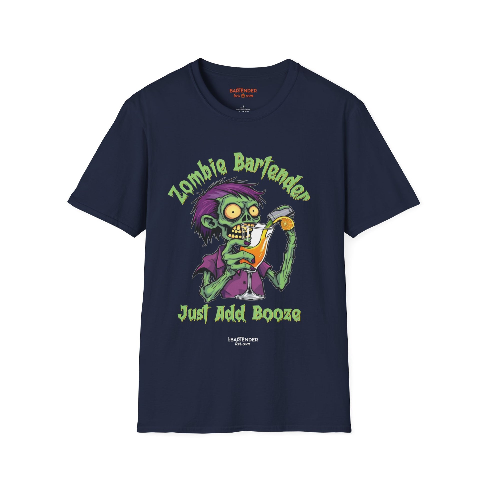 "Zombie Bartender Just Add Booze" Halloween Bartender Softstyle T-Shirt
